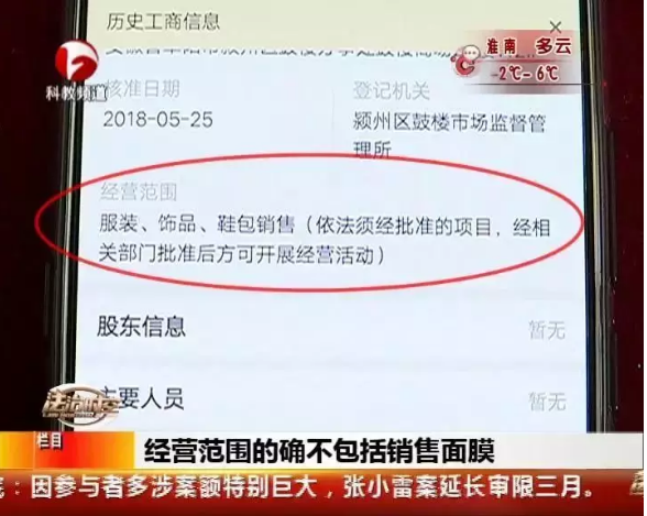 记者找到了出售面膜的这家服装店。服装店的老板娘一见到记者,就明确表示拒绝。记者看到服装店的工商注册信息经营范围并不包括销售面膜。