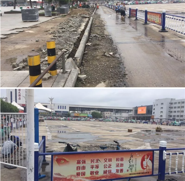 近日,不少细心的市民发现阜阳火车站站前广场正在发生变化!记者在阜阳火车站前广场看到,火车站前广场“提档升级”项目工程正在如火如荼的开展,广场地砖正在整修、停车场正在实施“白改黑”工程。 据了