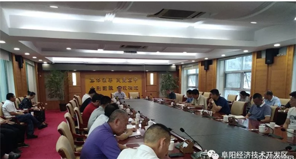 7月10日,阜阳经济技术开发区召开重点项目建设推进会,管委会副主任屈秀杰出席会议并讲话,经贸发展局局长宁东、招商局局长王传亚、开发建投公司、京九办事处、行政执法局、黄庄指挥部、环保分局、规划分局、国土